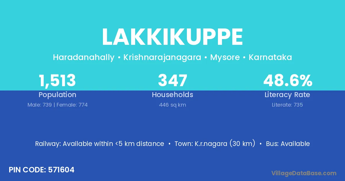 K.r.nagara (30 km) is the nearest town to Lakkikuppe village for major economic activities and is located approximately 30 km away.