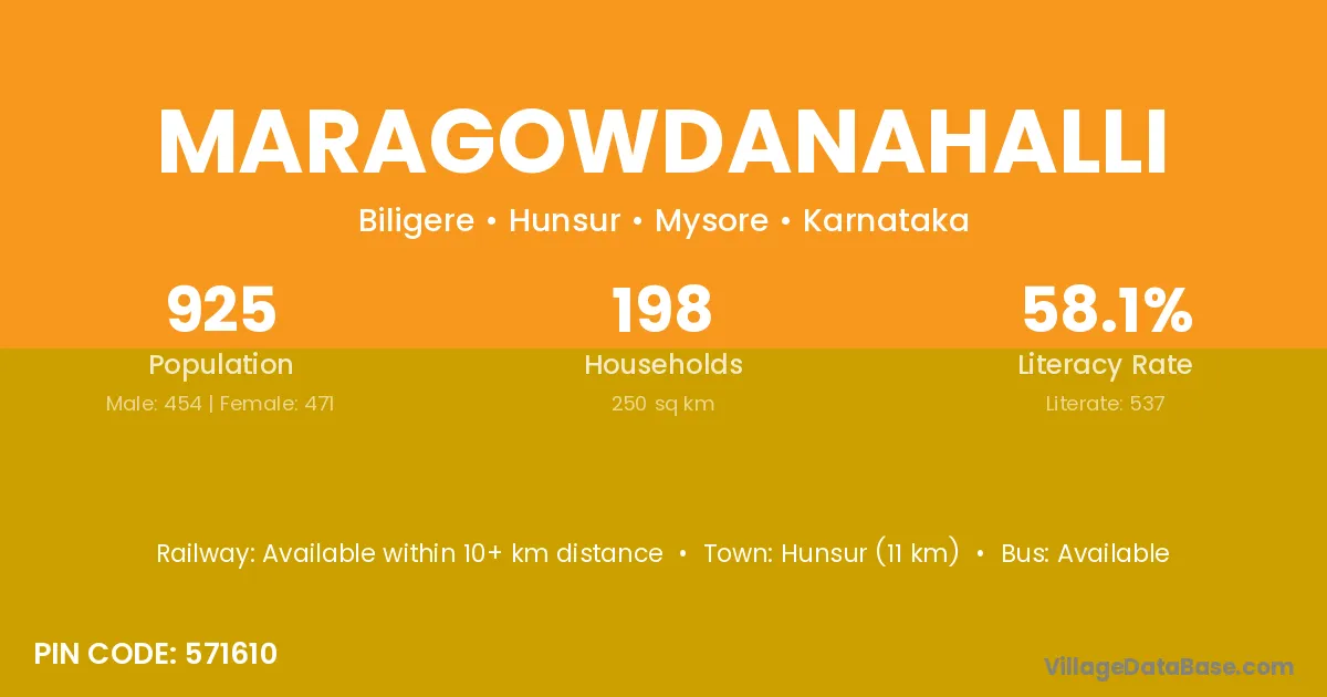 K.r.nagara (15 km) is the nearest town to Maragowdanahalli village for major economic activities and is located approximately 15 km away.