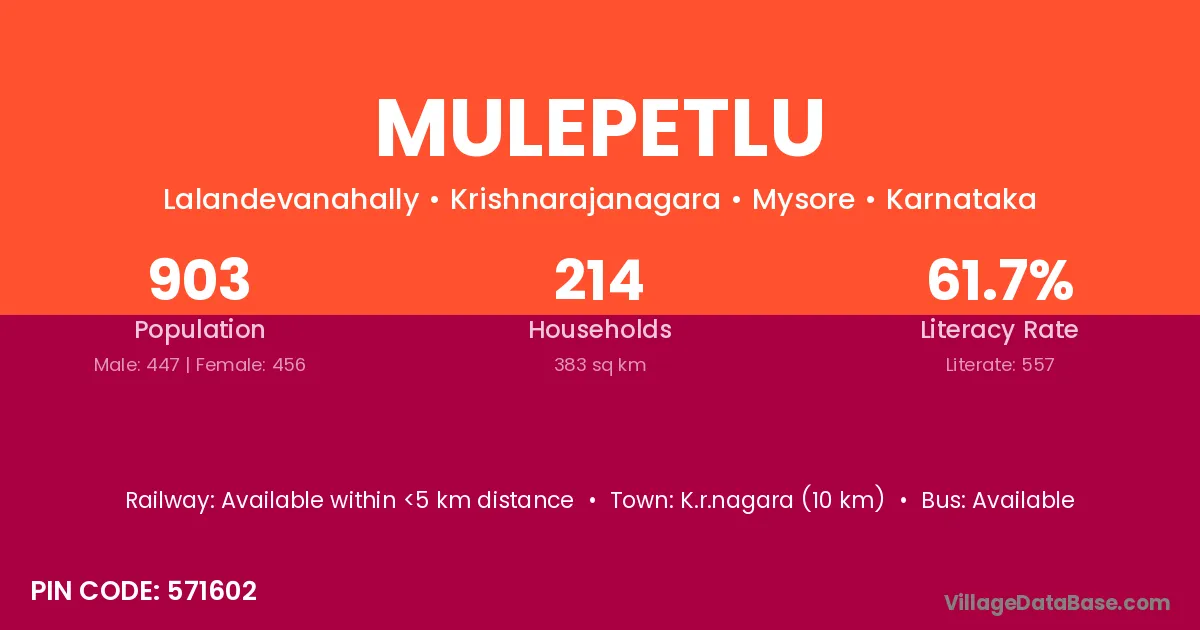 Mulepetlu village has a total population of 903 people, of which 447 are males and 456 are females.