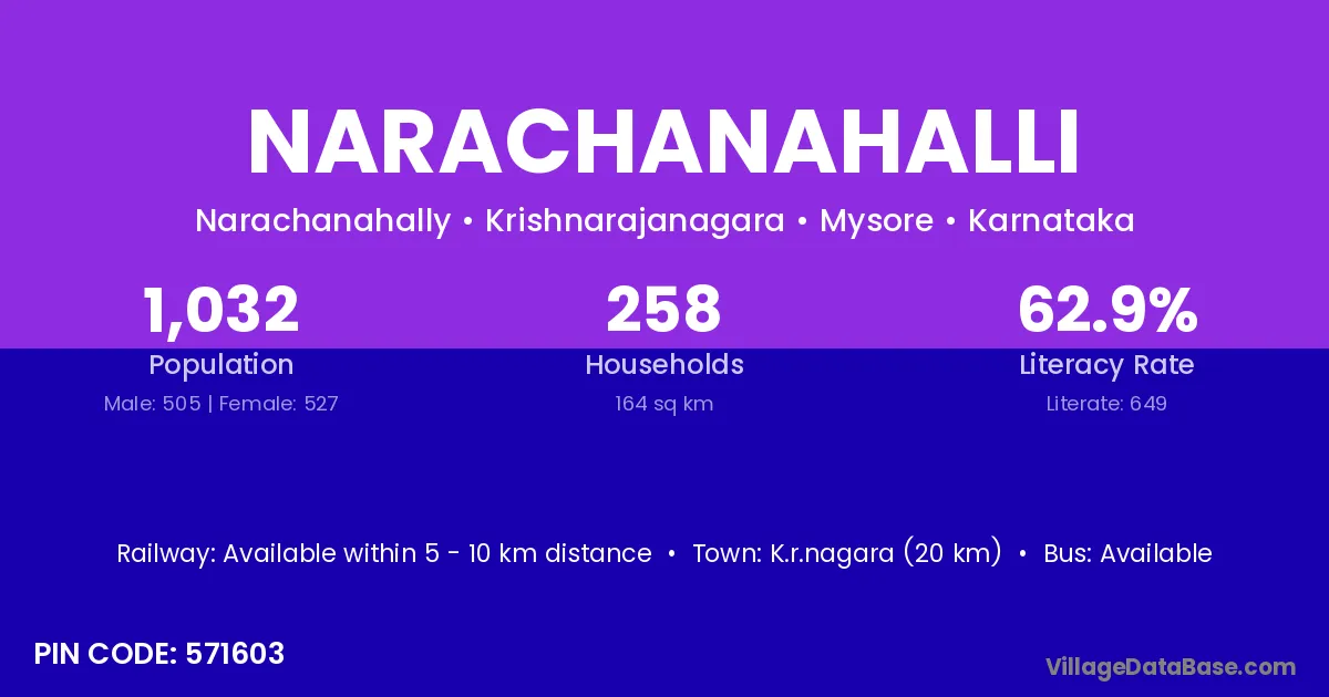 K.r.nagara (20 km) is the nearest town to Narachanahalli village for major economic activities and is located approximately 20 km away.
