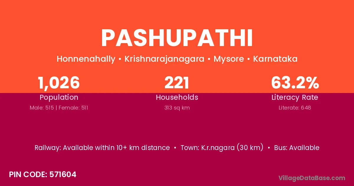 K.r.nagara (30 km) is the nearest town to Pashupathi village for major economic activities and is located approximately 30 km away.