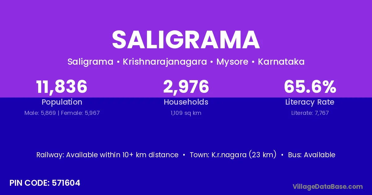 Saligrama village has a total population of 11,836 people, of which 5,869 are males and 5,967 are females.