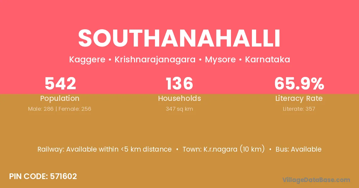 K.r.nagara (10 km) is the nearest town to Southanahalli village for major economic activities and is located approximately 10 km away.
