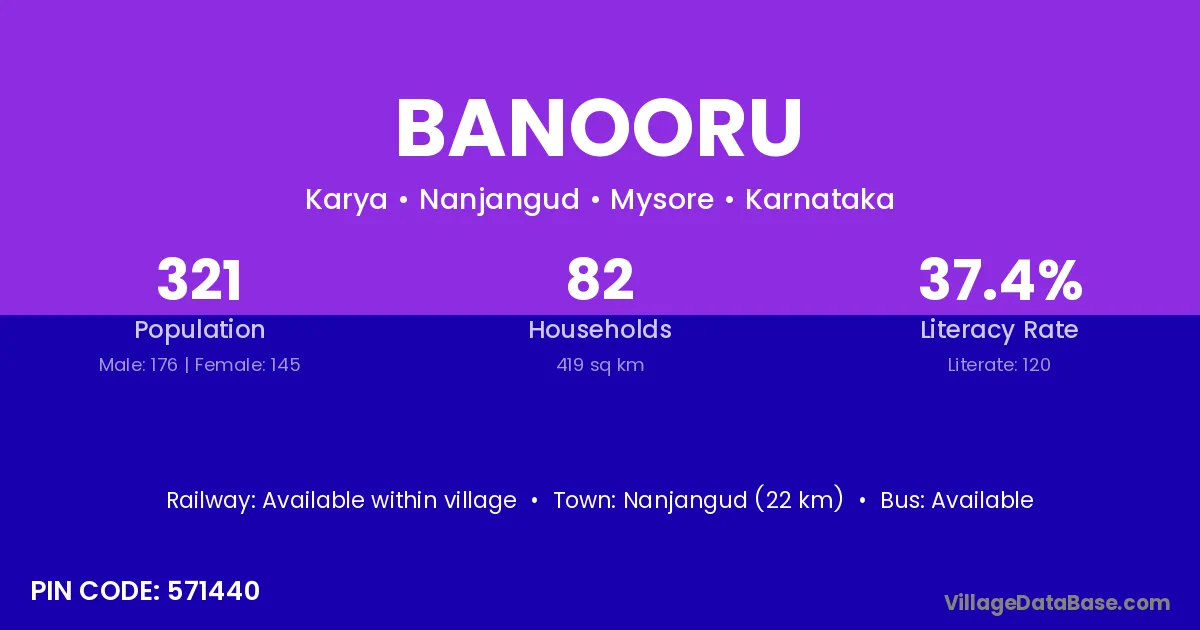 Nanjangud (22 km) is the nearest town to Banooru village for major economic activities and is located approximately 22 km away.