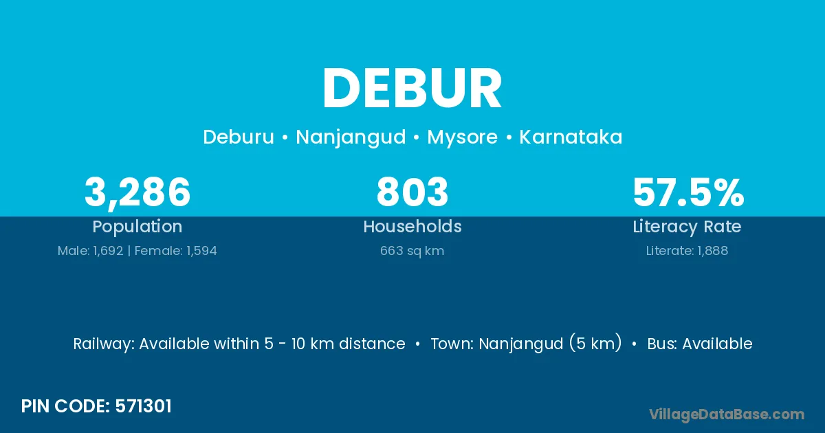 Nanjangud (5 km) is the nearest town to Debur village for major economic activities and is located approximately 5 km away.