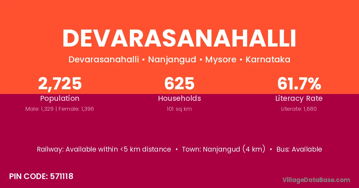 Nanjangud (4 km) is the nearest town to Devarasanahalli village for major economic activities and is located approximately 4 km away.