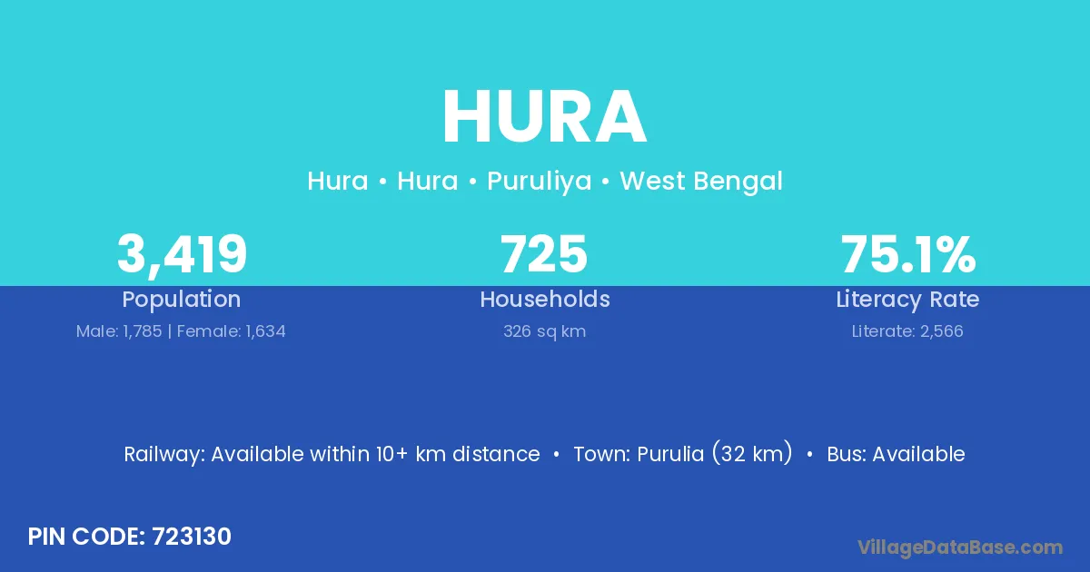 There are approximately 837 households in Hura village.