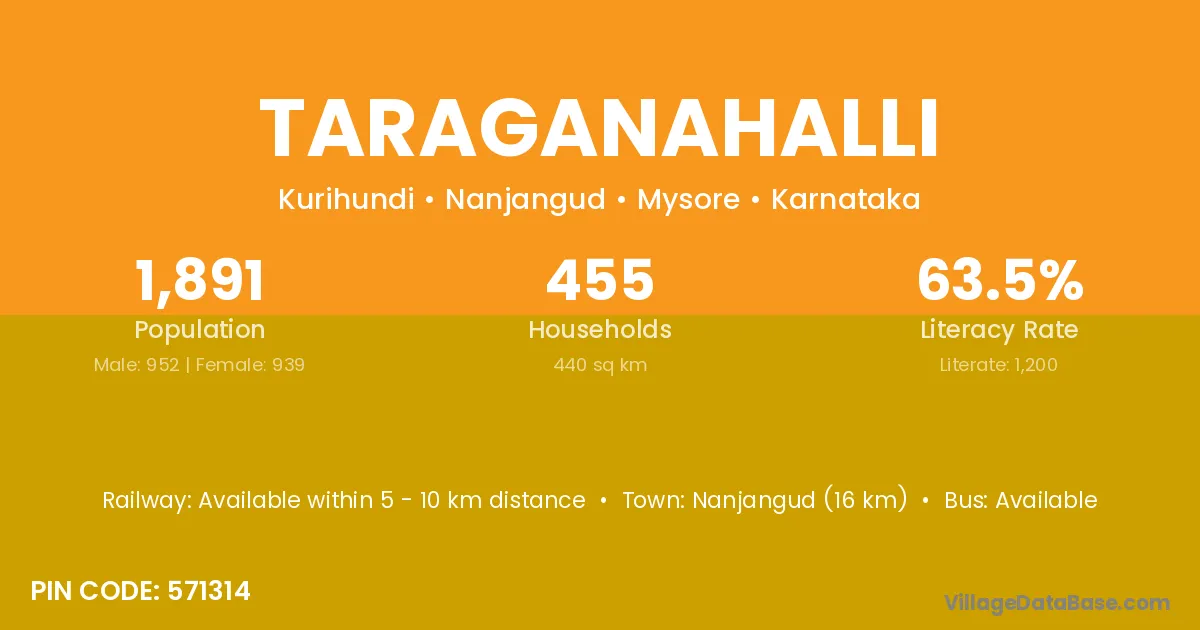Nanjangud (16 km) is the nearest town to Taraganahalli village for major economic activities and is located approximately 16 km away.
