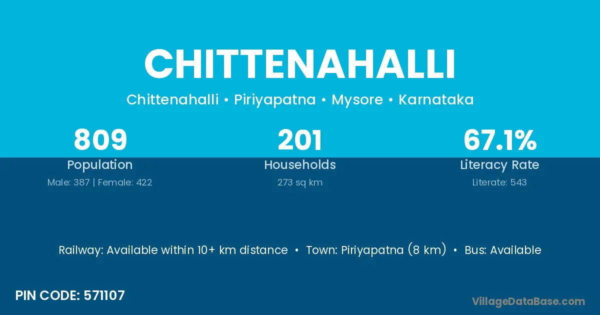 Piriyapatna (8 km) is the nearest town to Chittenahalli village for major economic activities and is located approximately 8 km away.