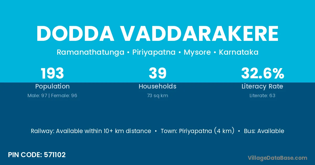 Piriyapatna (4 km) is the nearest town to Dodda Vaddarakere village for major economic activities and is located approximately 4 km away.