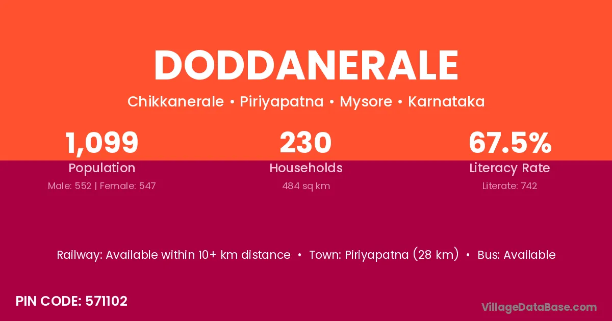 Doddanerale village has a total population of 1,099 people, of which 552 are males and 547 are females.