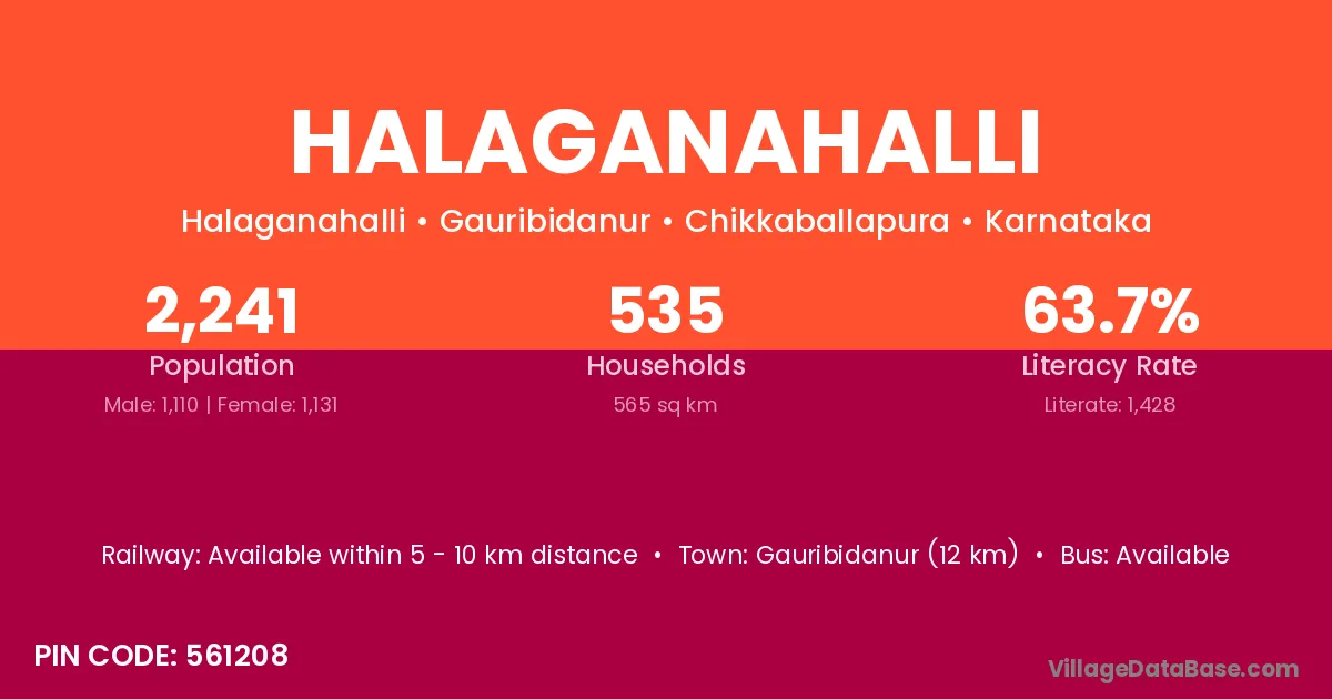 Halaganahalli village has a total population of 3,022 people, of which 1,512 are males and 1,510 are females.