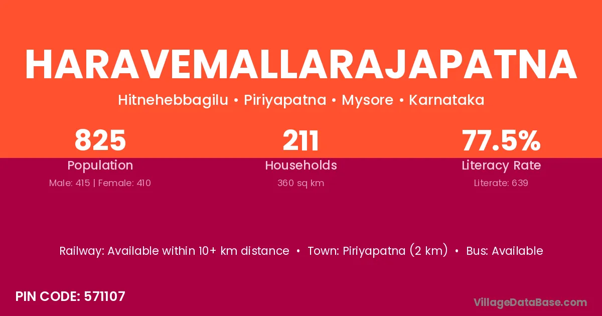 Piriyapatna (2 km) is the nearest town to Haravemallarajapatna village for major economic activities and is located approximately 2 km away.