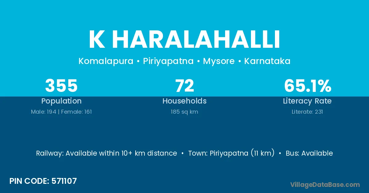 Piriyapatna (11 km) is the nearest town to K Haralahalli village for major economic activities and is located approximately 11 km away.
