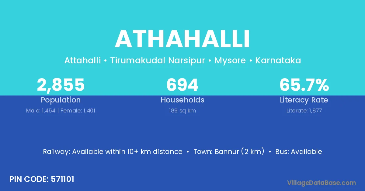 Bannur (2 km) is the nearest town to Athahalli village for major economic activities and is located approximately 2 km away.