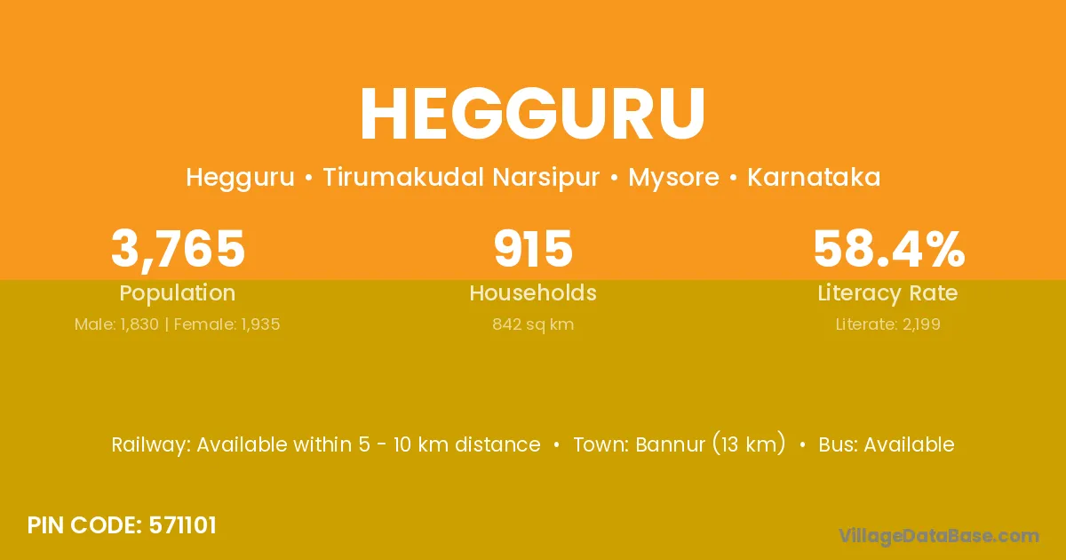 Bannur (13 km) is the nearest town to Hegguru village for major economic activities and is located approximately 13 km away.
