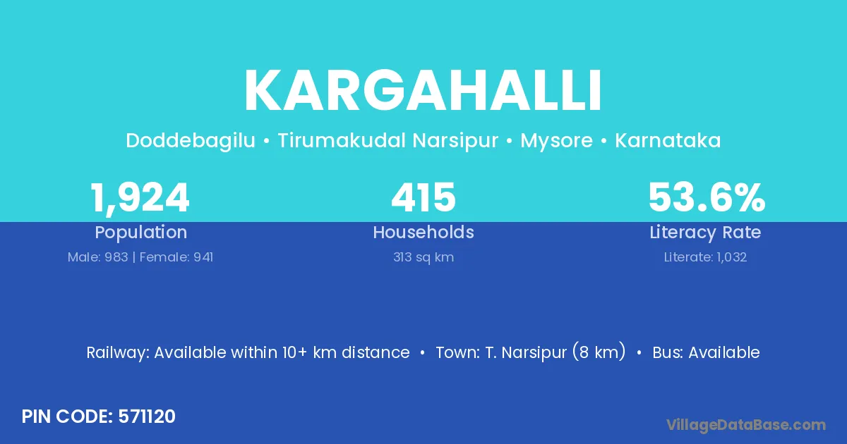 T. Narsipur (8 km) is the nearest town to Kargahalli village for major economic activities and is located approximately 8 km away.