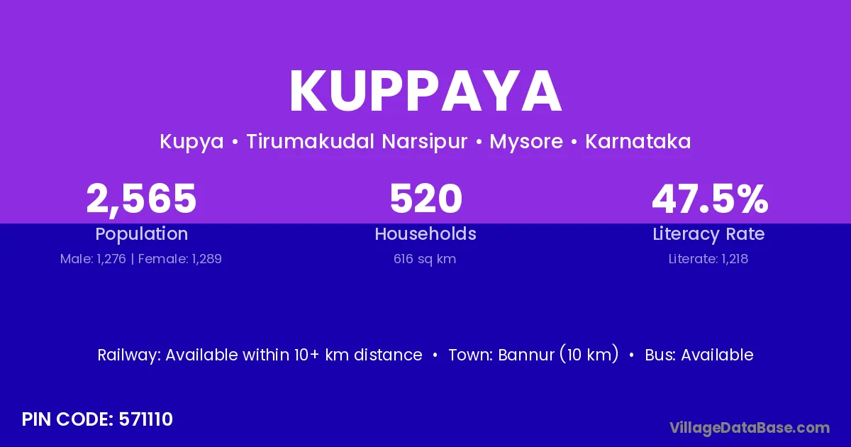 Bannur (10 km) is the nearest town to Kuppaya village for major economic activities and is located approximately 10 km away.