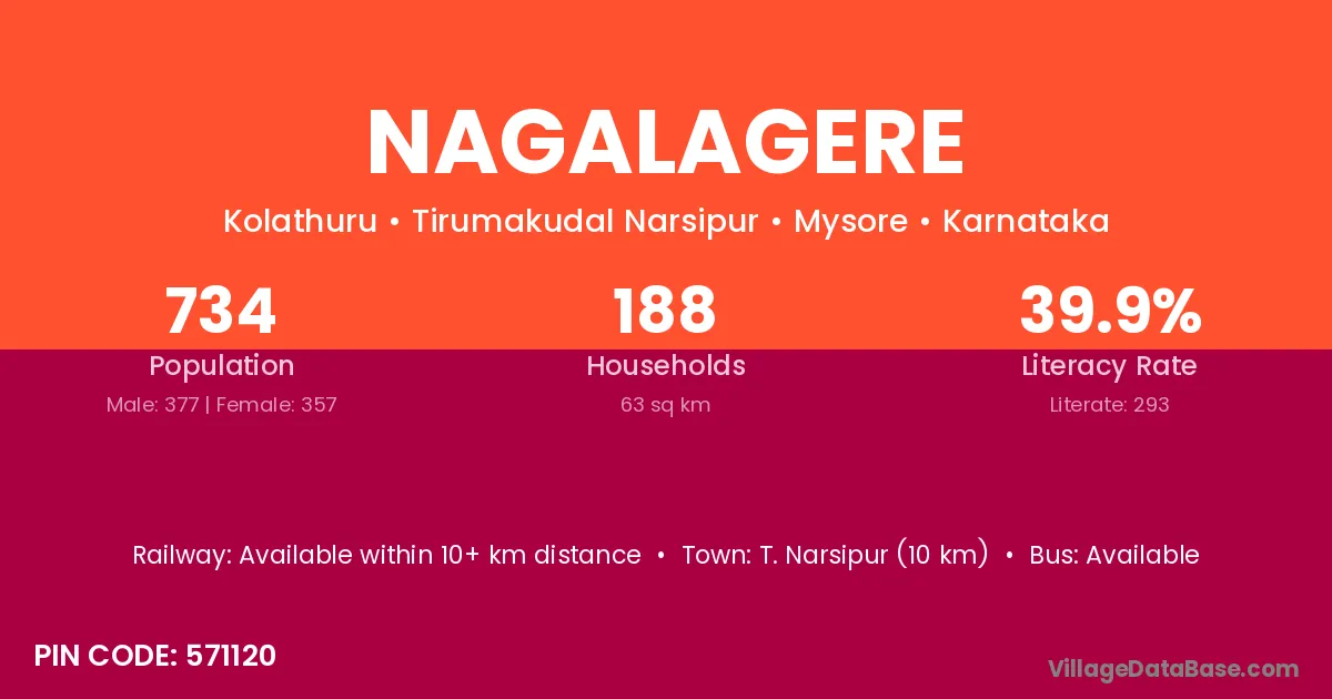 T. Narsipur (10 km) is the nearest town to Nagalagere village for major economic activities and is located approximately 10 km away.