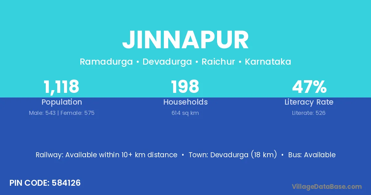 Devadurga (18 km) is the nearest town to Jinnapur village for major economic activities and is located approximately 18 km away.