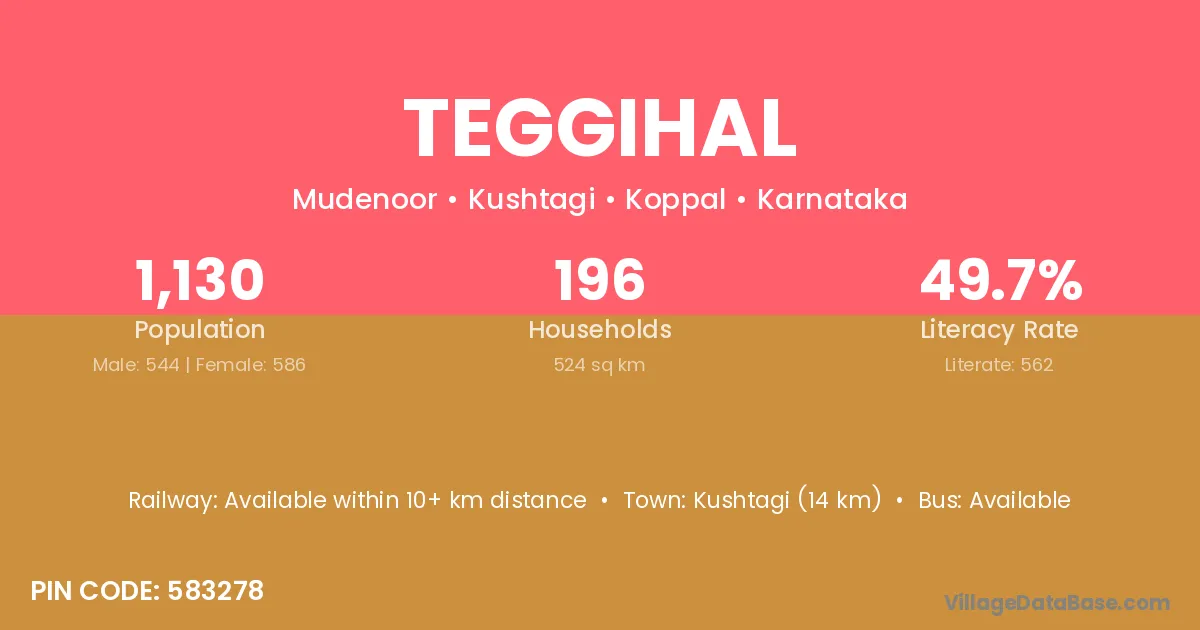 Devadurga (16 km) is the nearest town to Teggihal village for major economic activities and is located approximately 16 km away.