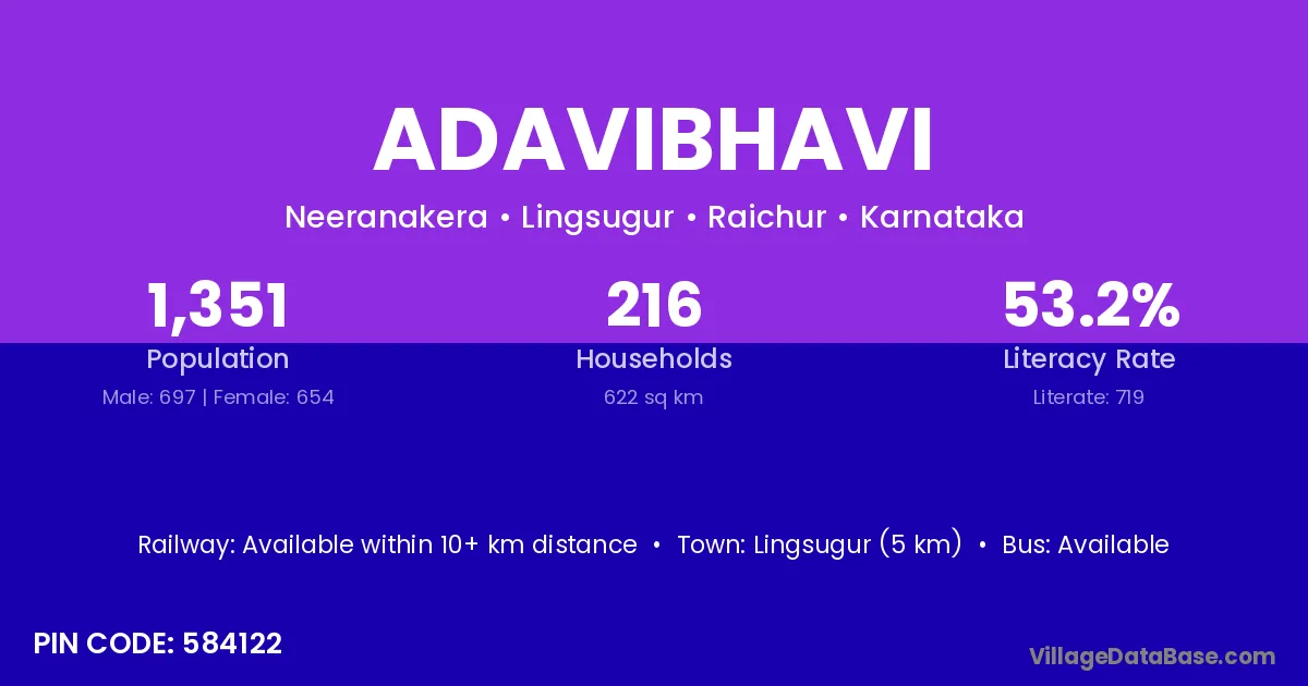 Lingsugur (5 km) is the nearest town to Adavibhavi village for major economic activities and is located approximately 5 km away.