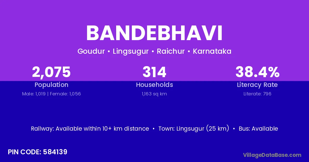 Lingsugur (25 km) is the nearest town to Bandebhavi village for major economic activities and is located approximately 25 km away.