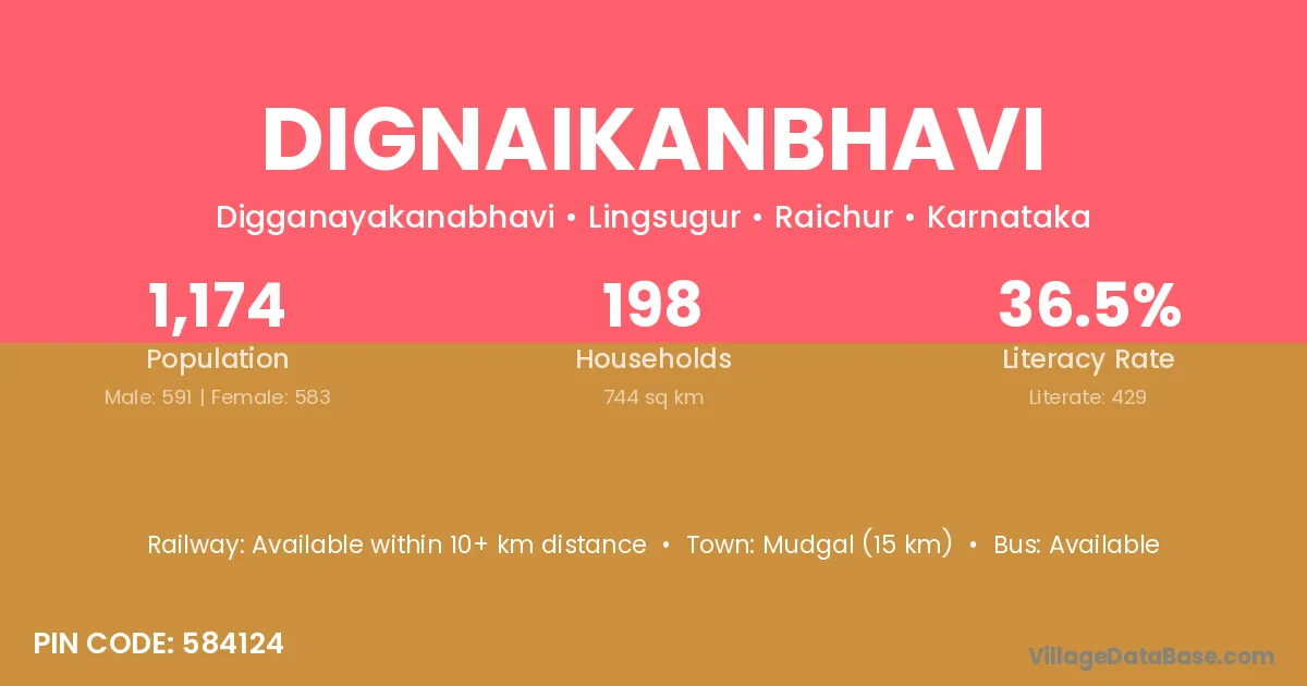 Mudgal (15 km) is the nearest town to Dignaikanbhavi village for major economic activities and is located approximately 15 km away.