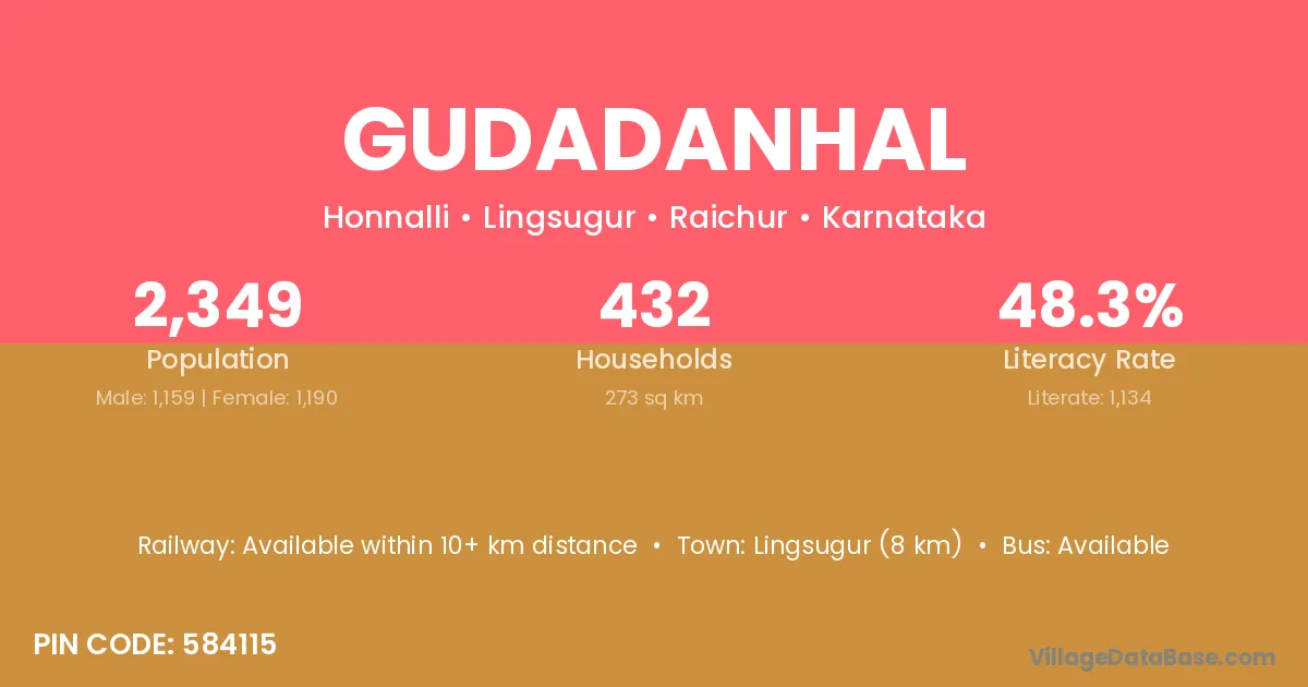 Gudadanhal village has a total population of 2,349 people, of which 1,159 are males and 1,190 are females.