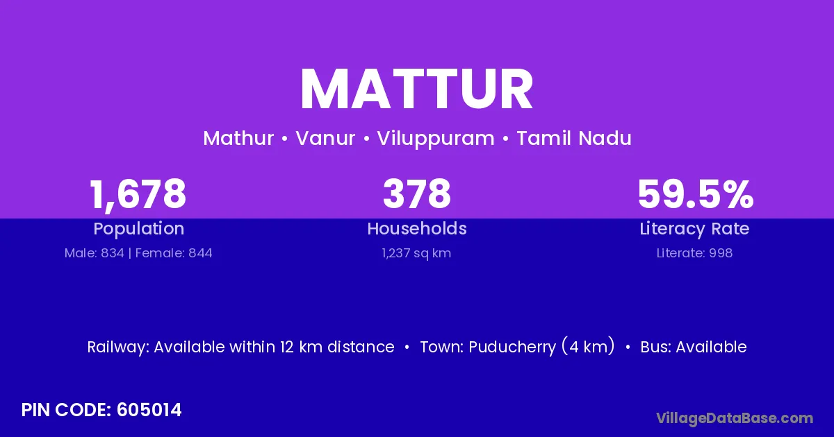 The literacy rate of Mattur village is 51.57%. Male literacy stands at 63.62% and female literacy at 39.15%.