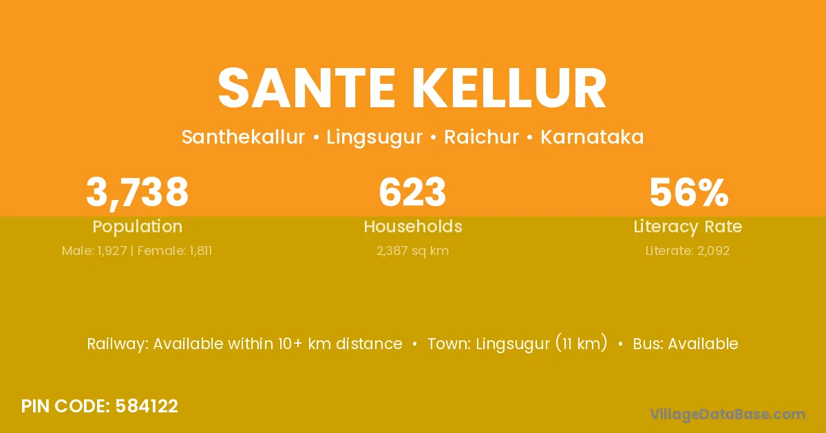 Lingsugur (11 km) is the nearest town to Sante Kellur village for major economic activities and is located approximately 11 km away.