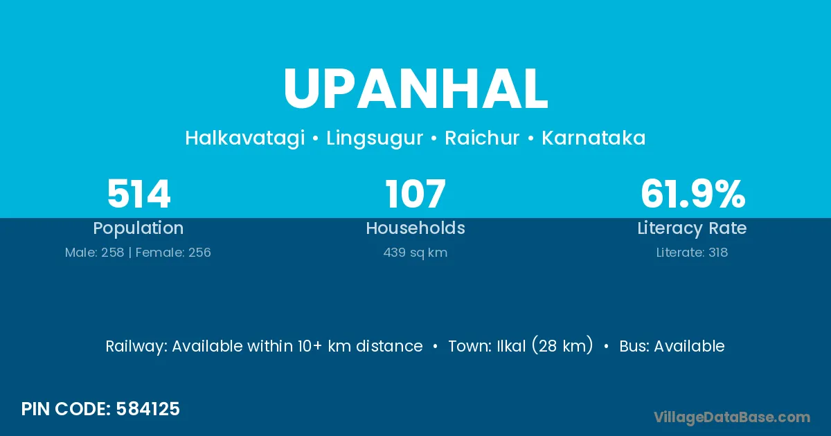 Ilkal (28 km) is the nearest town to Upanhal village for major economic activities and is located approximately 28 km away.