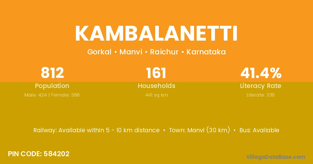 Manvi (30 km) is the nearest town to Kambalanetti village for major economic activities and is located approximately 30 km away.
