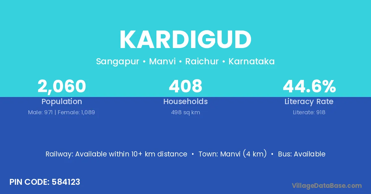 Manvi (4 km) is the nearest town to Kardigud village for major economic activities and is located approximately 4 km away.