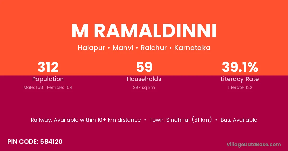 M Ramaldinni village has a total population of 312 people, of which 158 are males and 154 are females.