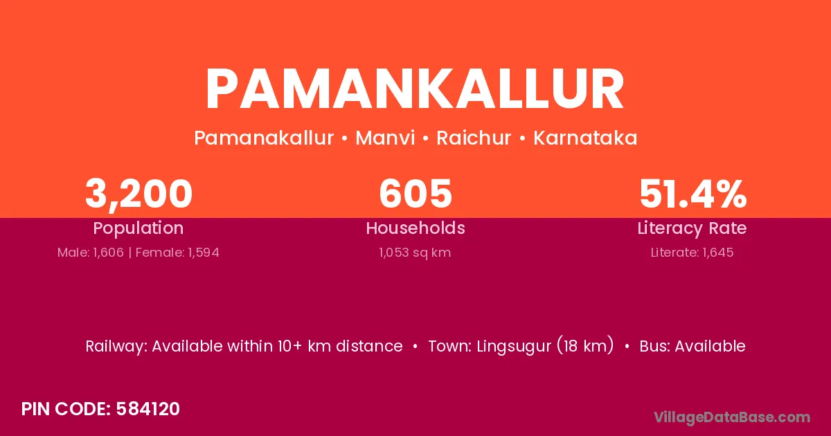 Lingsugur (18 km) is the nearest town to Pamankallur village for major economic activities and is located approximately 18 km away.