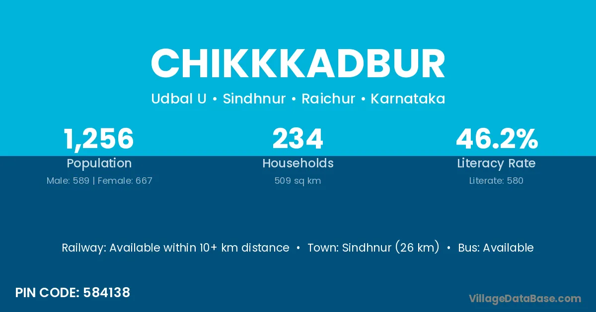 Sindhnur (26 km) is the nearest town to Chikkkadbur village for major economic activities and is located approximately 26 km away.