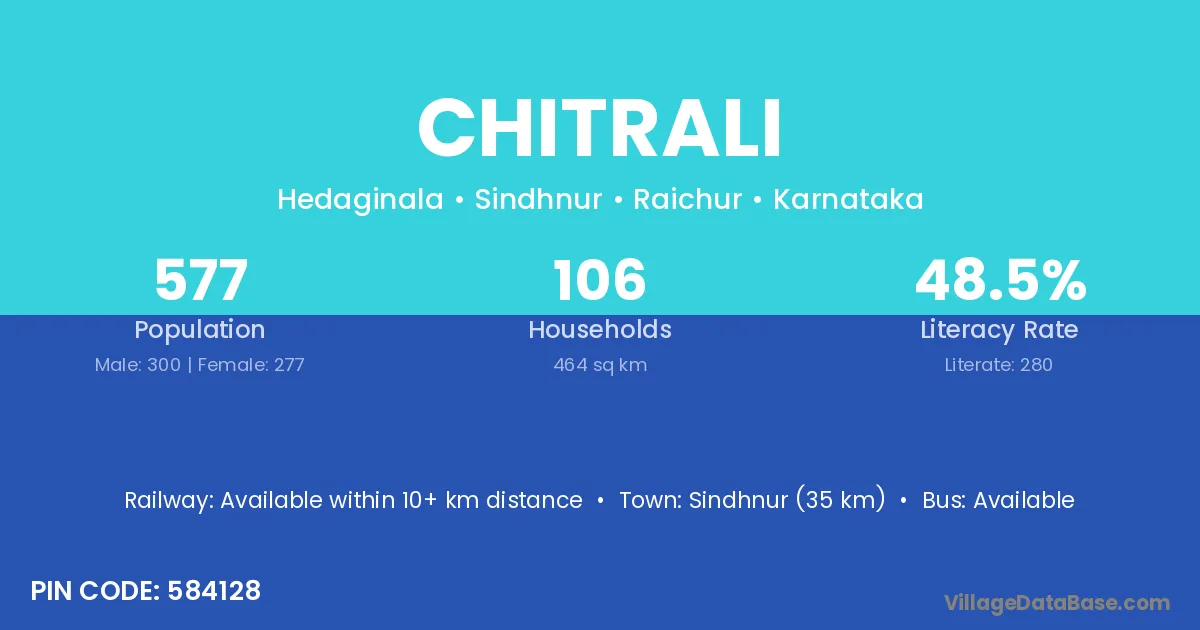 Sindhnur (35 km) is the nearest town to Chitrali village for major economic activities and is located approximately 35 km away.