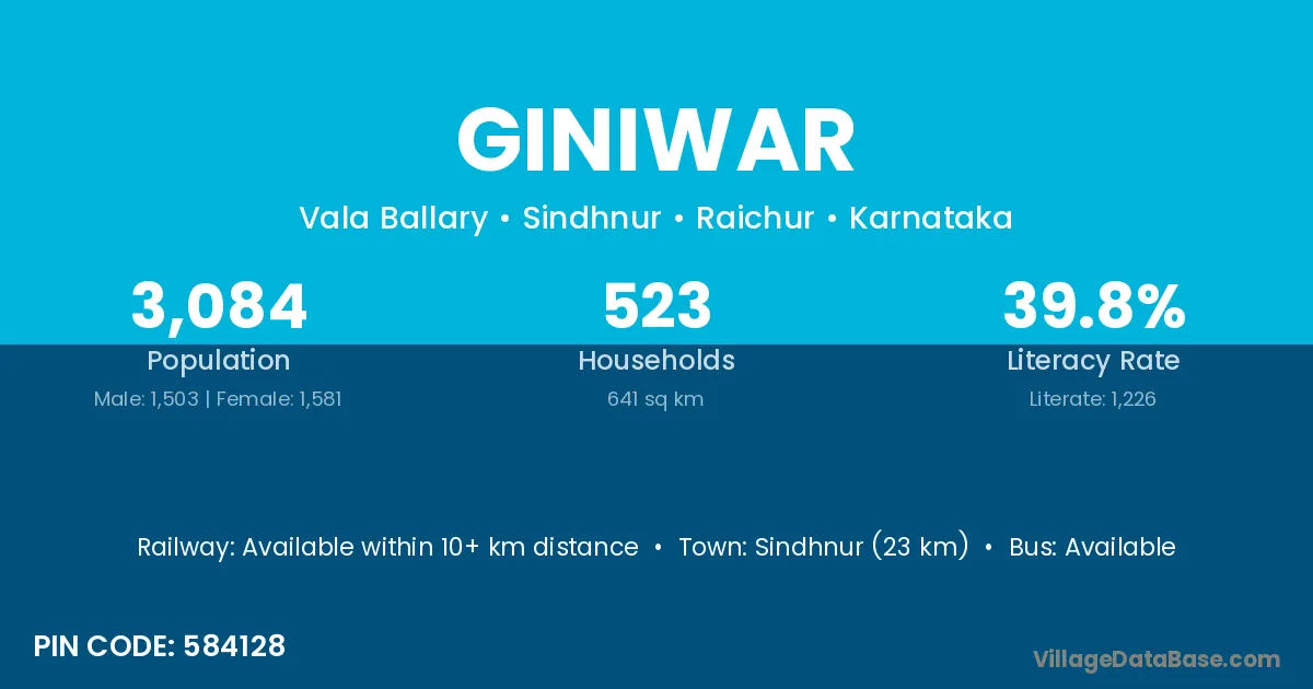 Sindhnur (23 km) is the nearest town to Giniwar village for major economic activities and is located approximately 23 km away.