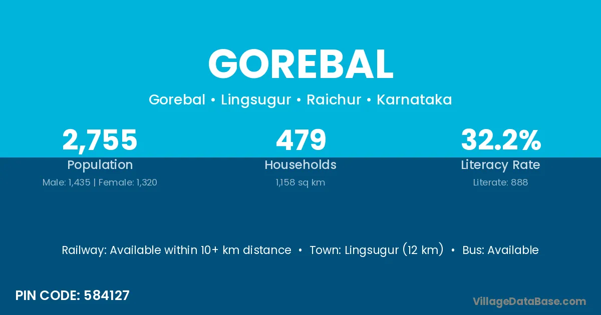 Sindhnur (9 km) is the nearest town to Gorebal village for major economic activities and is located approximately 9 km away.