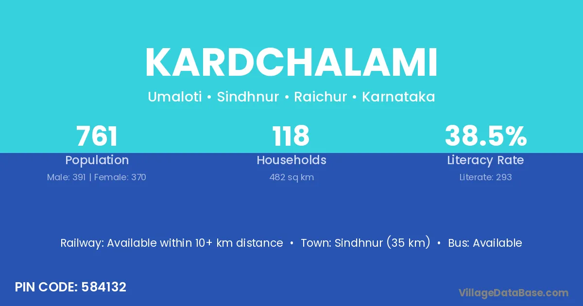 Sindhnur (35 km) is the nearest town to Kardchalami village for major economic activities and is located approximately 35 km away.