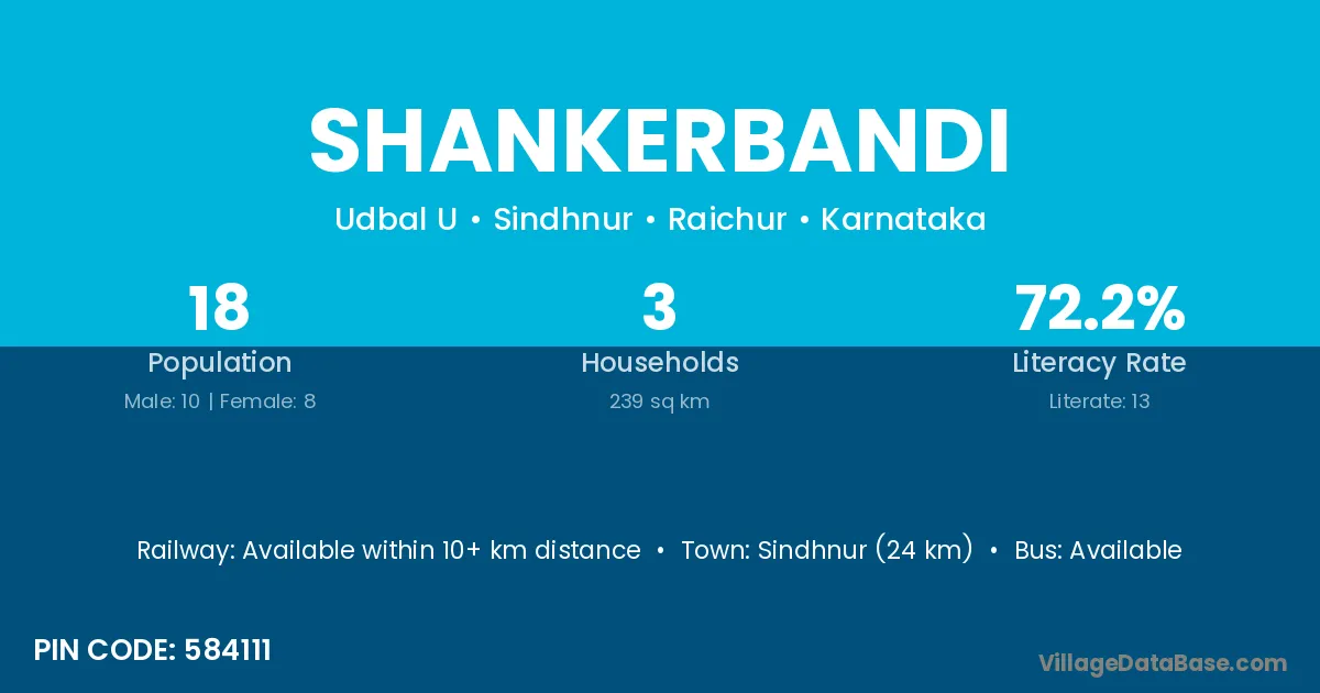 Sindhnur (24 km) is the nearest town to Shankerbandi village for major economic activities and is located approximately 24 km away.