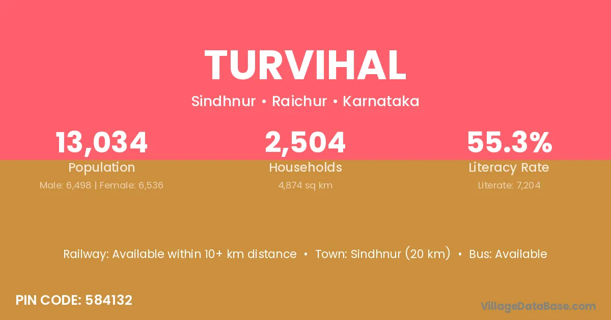 Sindhnur (20 km) is the nearest town to Turvihal village for major economic activities and is located approximately 20 km away.