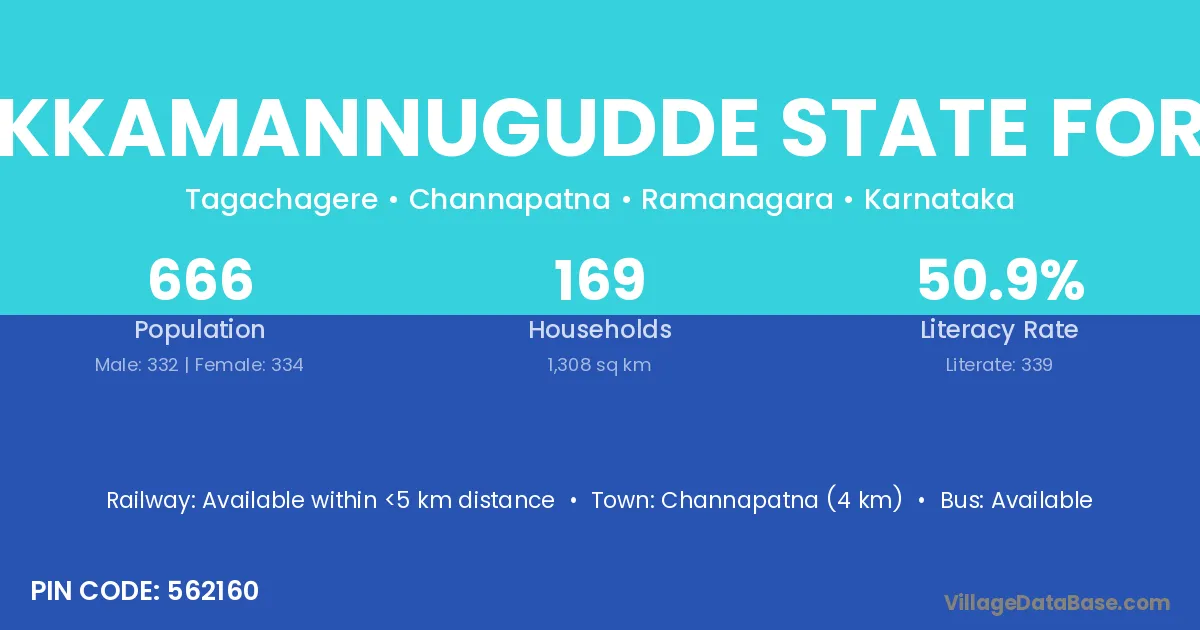 Chikkamannugudde State Forest village has a total population of 666 people, of which 332 are males and 334 are females.