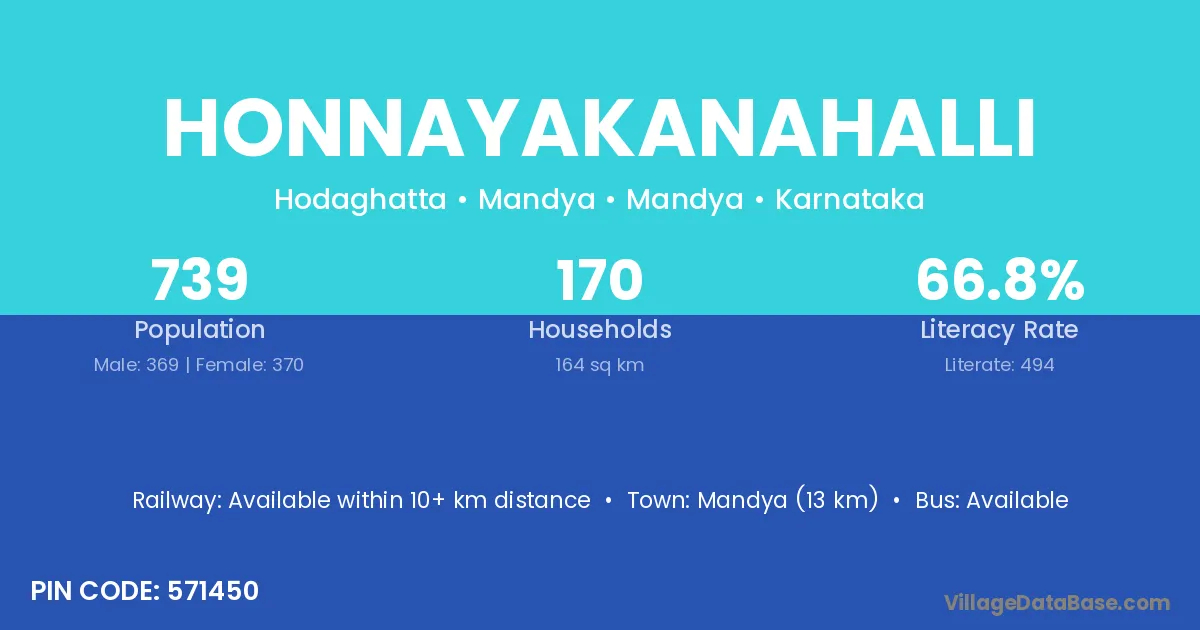 Channapatna (14 km) is the nearest town to Honnayakanahalli village for major economic activities and is located approximately 14 km away.
