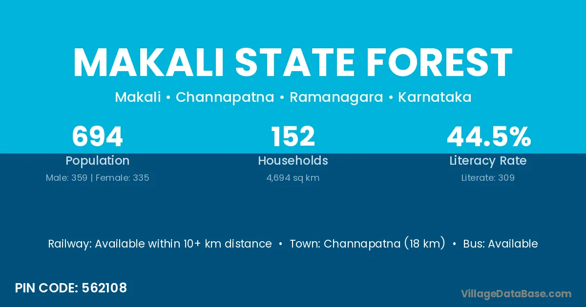 Makali State Forest village has a total population of 694 people, of which 359 are males and 335 are females.