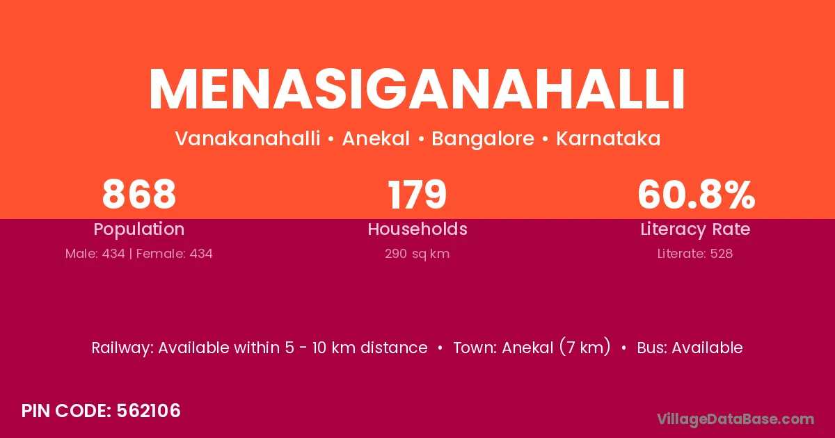 Channapatna (18 km) is the nearest town to Menasiganahalli village for major economic activities and is located approximately 18 km away.