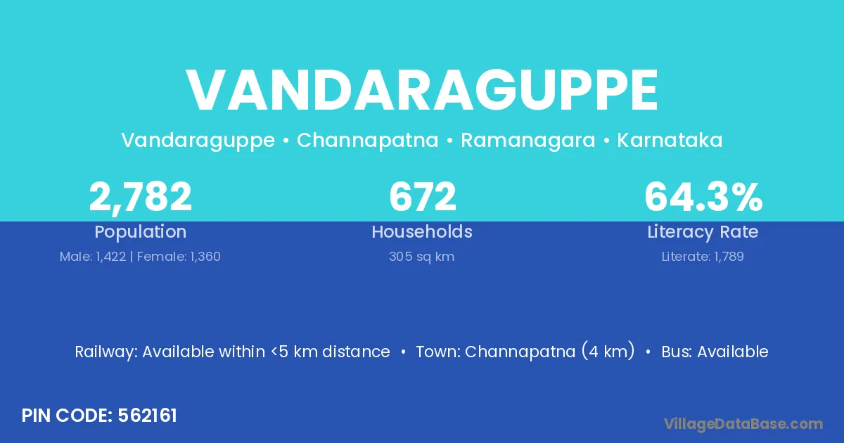 Channapatna (4 km) is the nearest town to Vandaraguppe village for major economic activities and is located approximately 4 km away.