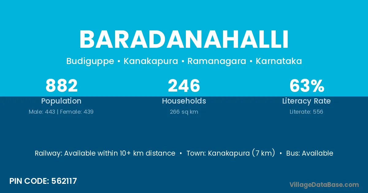 Kanakapura (7 km) is the nearest town to Baradanahalli village for major economic activities and is located approximately 7 km away.