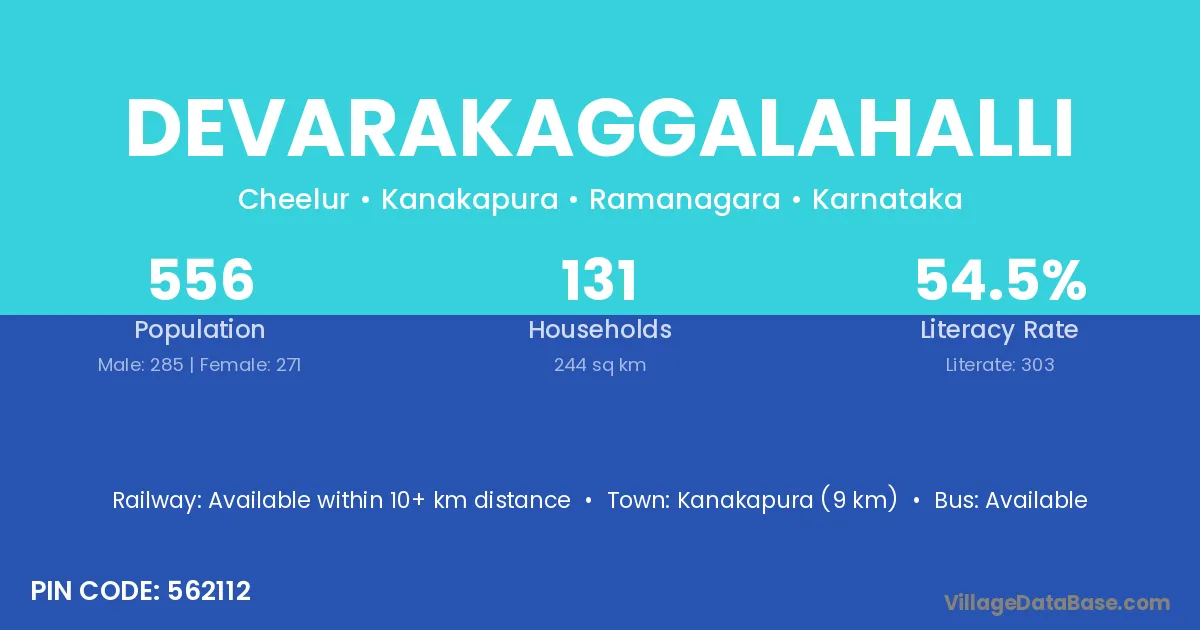 Devarakaggalahalli village has a total population of 556 people, of which 285 are males and 271 are females.